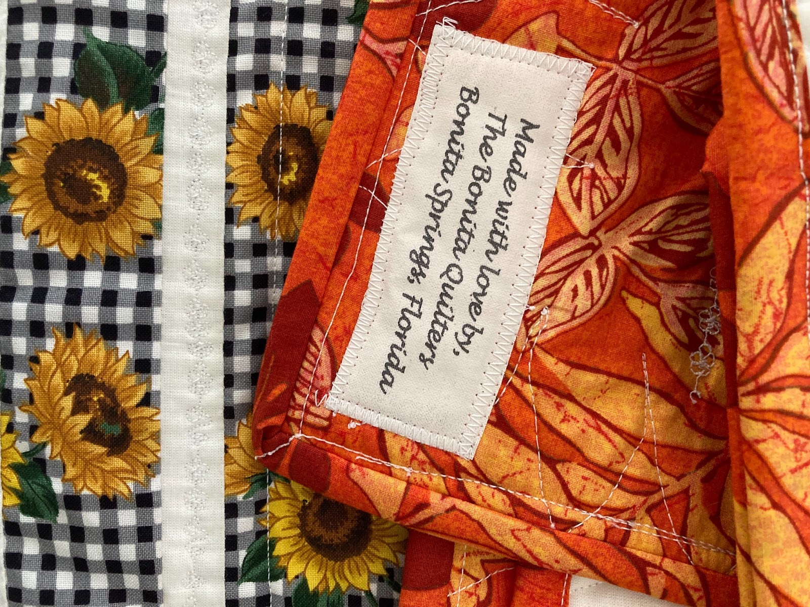 Living up to their name, the Bonita Quilters offered lovely hand-stitched quilts, one for each family member. One quilt, by pure coincidence, was covered in bright yellow sunflowers.